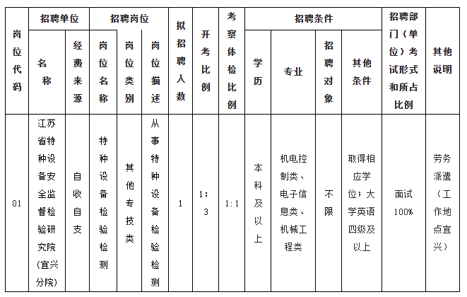 本次招聘解释权属江苏省特种设备安全监督检验研究院宜兴分院。
