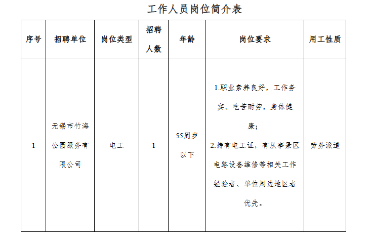 4. 具有岗位要求的其他条件(详见下方《无锡市竹海公园服务有限公司岗位简介表》)